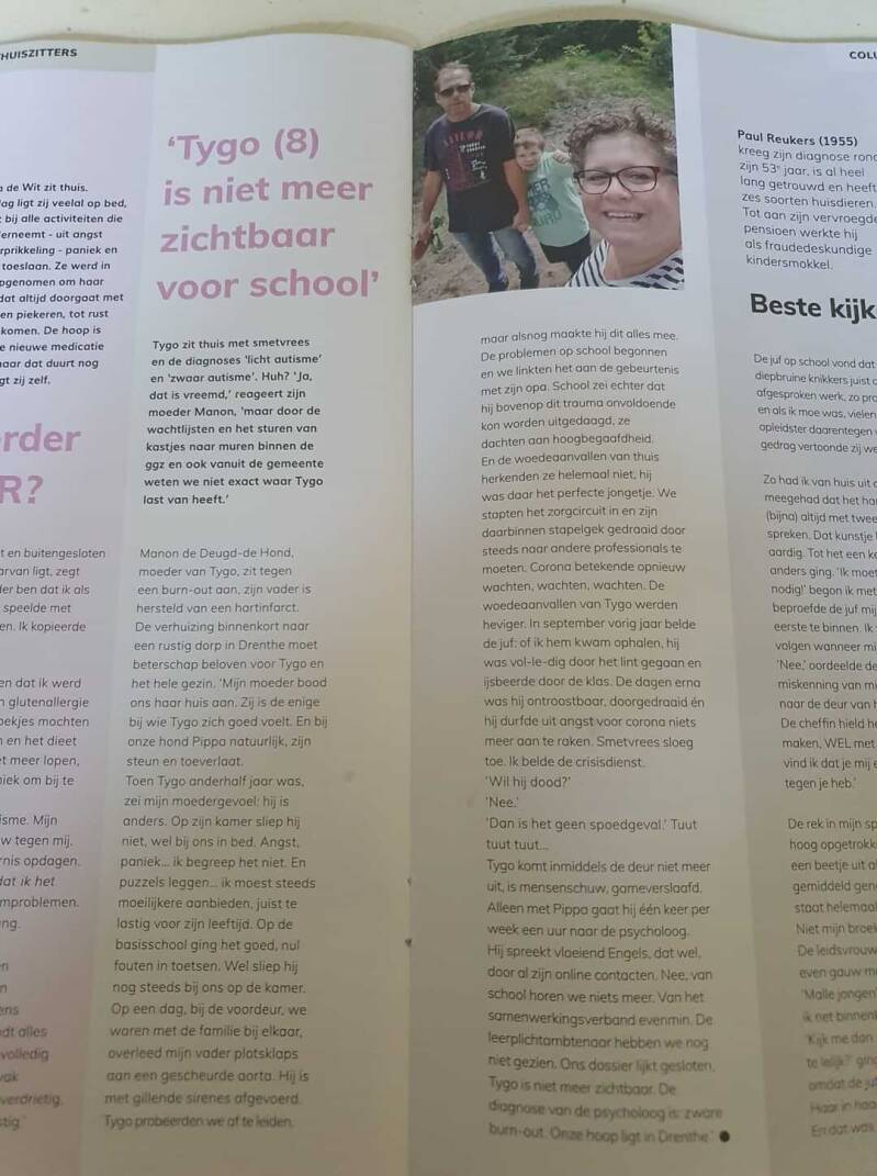 Samen met Anita van der Noord ben ik geïnterviewd over het inititief wat wij aan het opzetten waren om een lotgenotengroep te starten voor ouders van kinderen met een rugzak. In dit artikel is uitgebreid geschreven over Tygo die al 2 jaar thuis zat en onzichtbaar was voor onderwijs. Het vechten, onbegrip en onmacht worden in dit artikel erg mooi verwoord.